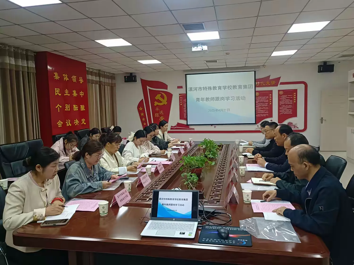 4月23日上午,漯河市特殊教育教研中心组第四次教学研修活动在漯河市孤残儿童特殊教育学校举行。漯河市教育教学研究室副主任张瑞华、漯河市特殊教育学校教育集团理事长赵启申、漯河市孤残儿童特殊教育学校校长赵锦伟、漯河市特殊教育教研中心组全体成员和漯河市特殊教育集团各成员校教师代表及参与第二批跟岗学习活动的青年教师参加了本次活动。